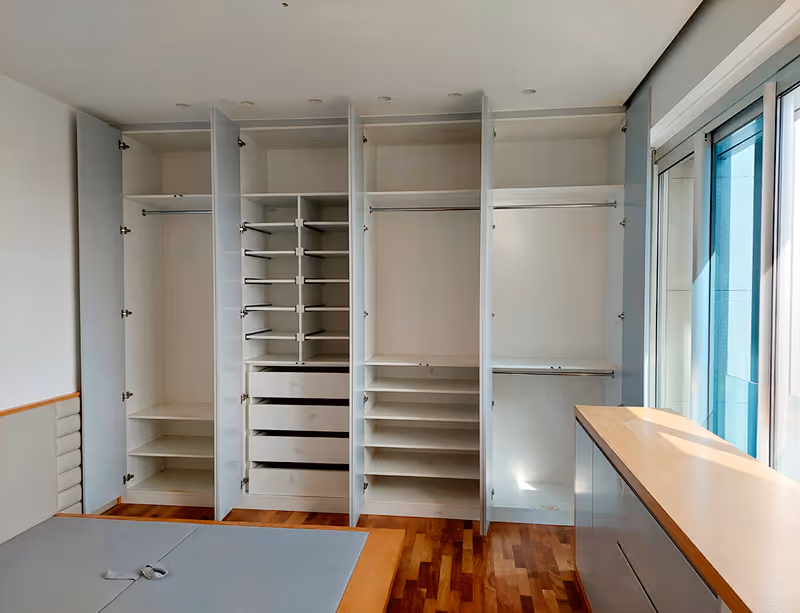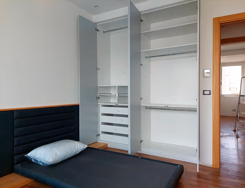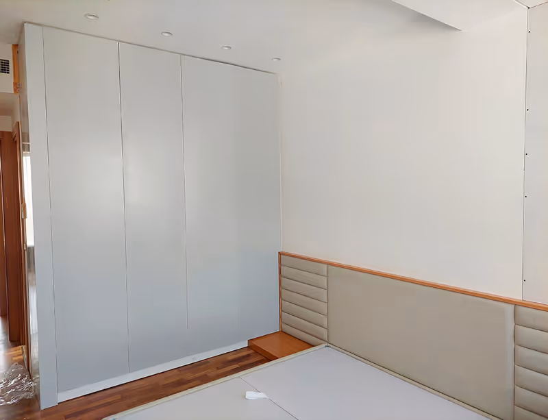 Strategy: Our strategy focused on creating a luminous, calming bedroom, combining neutral tones, natural materials, and functional comfort to suit furnished residential living.