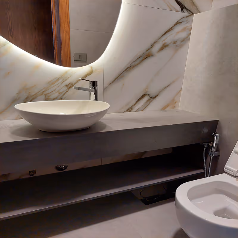 - Lighting Design: Indirect lighting integration for mirrors and accents