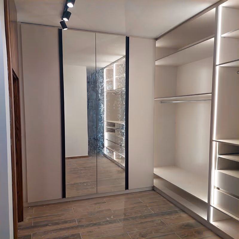 Strategy: Our approach focused on combining functionality and luxury, using thoughtful wardrobe design, mirrors, and space planning to create a bedroom that reflects the client’s personality while maximizing comfort and visual appeal.