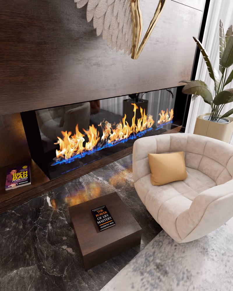 Strategy: Our approach focused on layering textures and contrasts, blending rustic elements with modern minimalism to create a spacious yet intimate living experience.